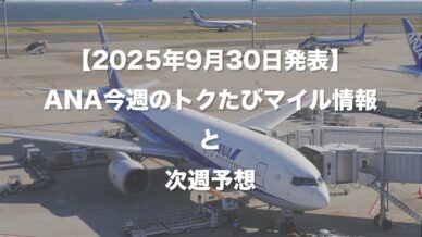 マイル・特典航空券【2025年9月16日発表】ANA今週のトクたびマイル情報と次週予想 【2025年9月16日発表】ANA「今週のトクたびマイル」対象30路線を空港別にわかりやすく解説。マイル数一覧、過去との比較、次回予想も掲載! 2025.09.16マイル・特典航空券