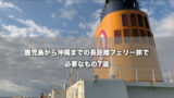 この記事では、鹿児島〜沖縄間のフェリー航路について、運航会社や所要時間・料金、予約方法をわかりやすく解説します。さらに、実際の乗船記も内部リンクで紹介しているので、乗船前に知っておきたいリアルな体験談もチェックできます。