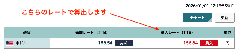 115,000マイル ÷ 123マイル × 100ドル = 約93,500ドル - 2026年1月1日時点の為替レート(TTS):1ドル = 156.84円