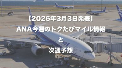 マイル・特典航空券【2026年3月3日発表】ANA今週のトクたびマイル情報と次週予想 【2026年3月3日発表】ANA「今週のトクたびマイル」対象30路線を主要空港別に一覧で紹介。次週の対象路線予想やお得に予約するコツ、空港別の出現傾向ページへのリンクも掲載しています。 2025.09.30マイル・特典航空券
